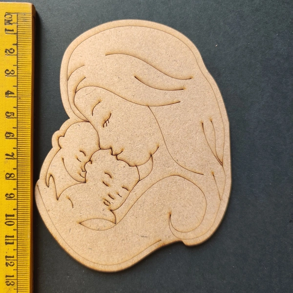 Mother with babies engraved MDF